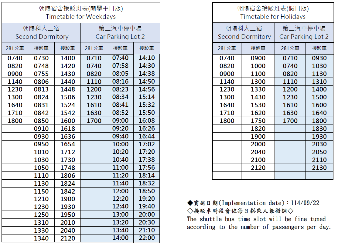 📣114-1學年接駁車時程表📣2025.09.19起適用