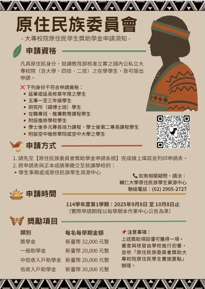 ⭐️114學年度第1學期原民會獎助學金申請通知⭐️