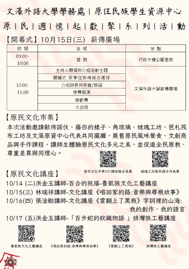 文藻學校財團法人文藻外語大學「原民週」系列活動