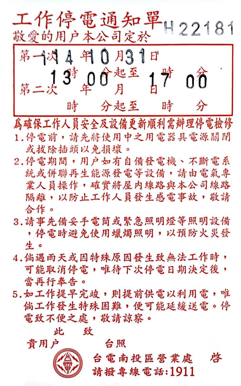 【10/31 1300-1700第二宿舍全區停電檢修通知】