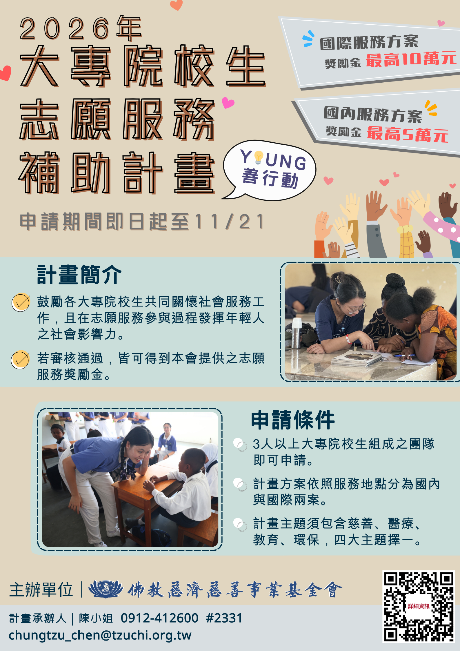 慈濟慈善事業基金會「Young善行動-大專院校生志願服務申請補助計畫」海報.png