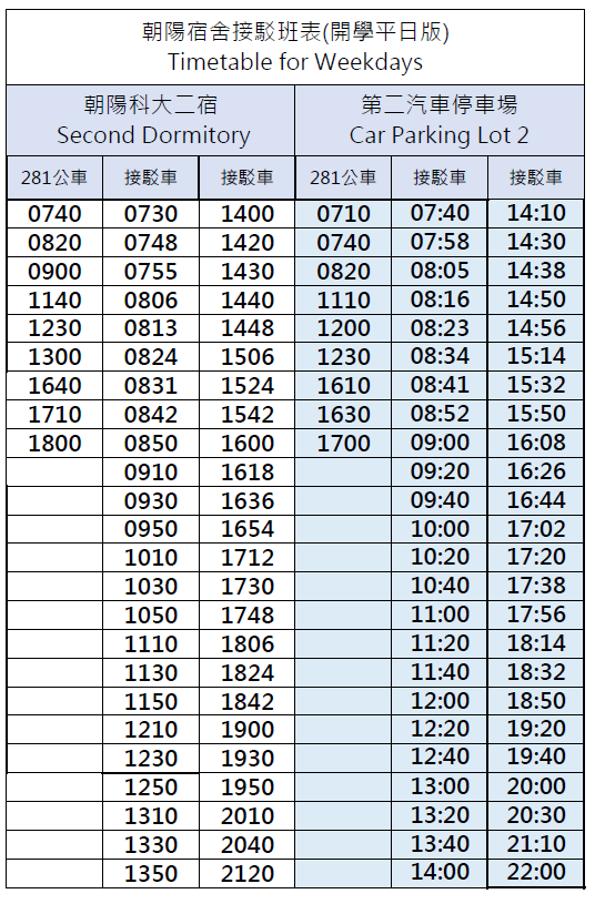 接駁車班次時間 Shuttle bus schedule